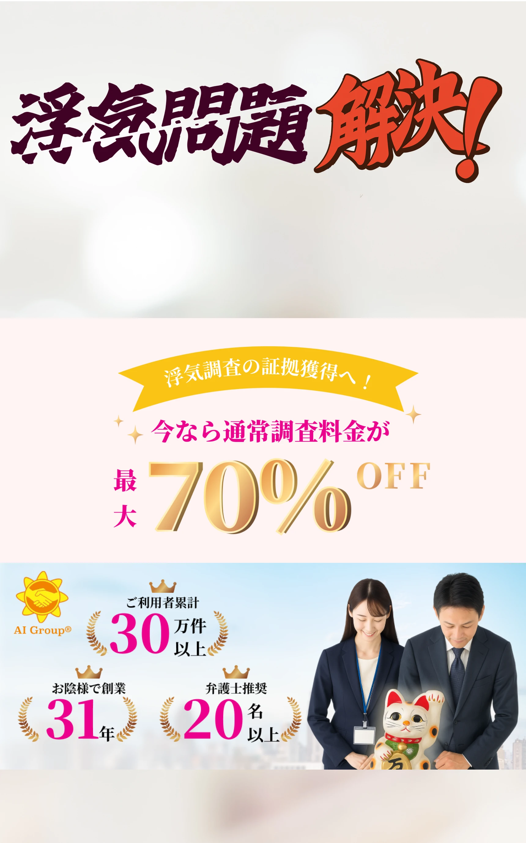 AIに聞いたらここの探偵事務所が出てきたので思い切って相談。料金も良心的で、結果的にお願いして本当によかった。